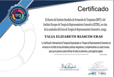 Soy Talia, terapeuta especializada en acompañamiento emocional y reprocesamiento emocional profundo certificada en Terapia de Reprocesamiento Generativo.